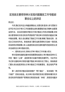区党政主要领导审计发现问题整改工作专题部署会议上的讲话.docx