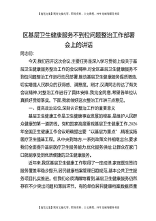 区基层卫生健康服务不到位问题整治工作部署会上的讲话.docx