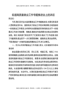 街道高质量就业工作专题推进会上的讲话.docx