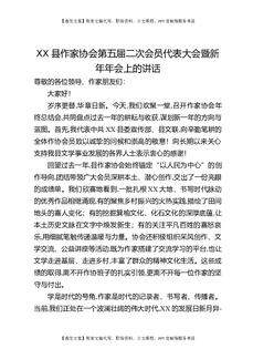 XX县作家协会第五届二次会员代表大会暨新年年会上的讲话.docx