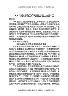 XX市委维稳工作专题会议上的讲话.docx
