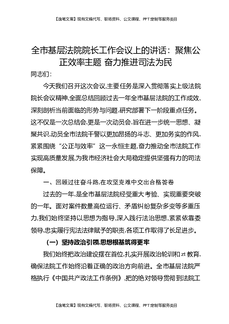 全市基层法院院长工作会议上的讲话:聚焦公正效率主题,奋力推进司法为民.docx