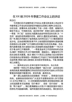 在XX镇2026年季度工作会议上的讲话.docx