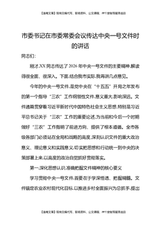 市委书记在市委常委会议传达中央一号文件时的讲话.docx