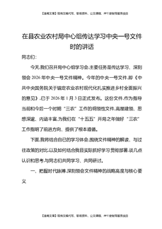 在县农业农村局中心组传达学习中央一号文件时的讲话.docx