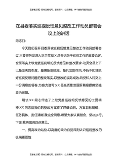 在县委落实巡视反馈意见整改工作动员部署会议上的讲话.docx