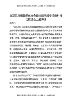 在正风肃纪警示教育会暨违规吃喝专项查纠行动推进会上的讲话.docx