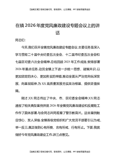 在镇2026年度党风廉政建设专题会议上的讲话.docx