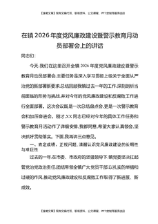 在镇2026年度党风廉政建设暨警示教育月动员部署会上的讲话.docx