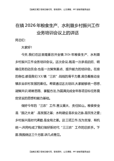 在镇2026年粮食生产水利暨乡村振兴工作业务培训会议上的讲话.docx