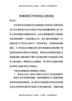 在镇保密工作培训会上的讲话.docx