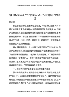 镇2026年茶产业质量安全工作专题会上的讲话.docx