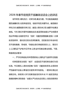 2026年春节前党员干部廉政谈话会上的讲话.docx