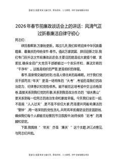 2026年春节前廉政谈话会上的讲话:风清气正过新春廉洁自律守初心.docx