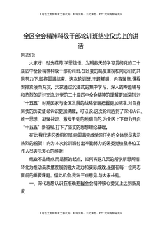 全区全会精神科级干部轮训班结业仪式上的讲话.docx