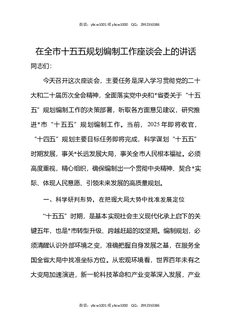 在全市十五五规划编制工作座谈会上的讲话.docx