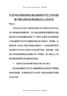 在全市纵深推进群众身边腐败和不正之风问题集中整治再动员再部署会议上的讲话.docx