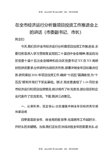 在全市经济运行分析暨项目投资工作推进会上的讲话(市委副书记,市长).docx