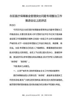 在区医疗保障基金管理突出问题专项整治工作推进会议上的讲话.docx