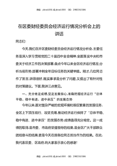 在区委财经委员会经济运行情况分析会上的讲话.docx