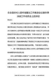 在全县农村人居环境整治工作推进会议暨冬季决战工作动员会上的讲话.docx