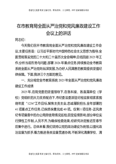 在市教育局全面从严治党和党风廉政建设工作会议上的讲话.docx