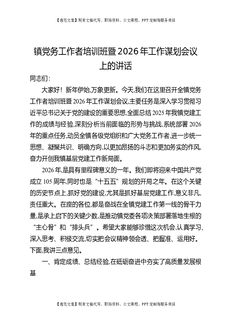 镇党务工作者培训班暨2026年工作谋划会议上的讲话.docx