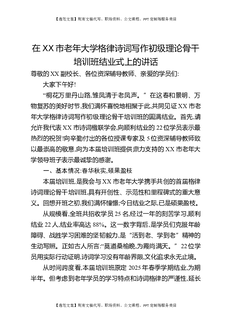 在XX市老年大学格律诗词写作初级理论骨干培训班结业式上的讲话.docx