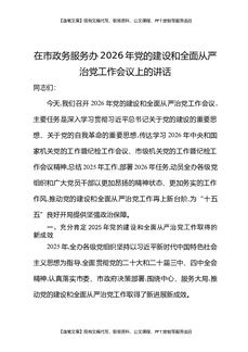 在市政务服务办2026年党的建设和全面从严治党工作会议上的讲话.docx