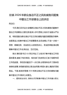 在镇2026年群众身边不正之风和腐败问题集中整治工作部署会上的讲话.docx