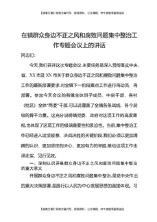 在镇群众身边不正之风和腐败问题集中整治工作专题会议上的讲话.docx