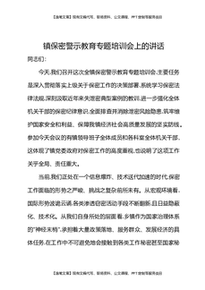 镇保密警示教育专题培训会上的讲话.docx