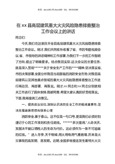 在XX县高层建筑重大火灾风险隐患排查整治工作会议上的讲话.docx