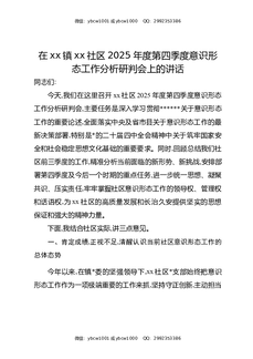 在XX镇XX社区2025年度第四季度意识形态工作分析研判会上的讲话.docx