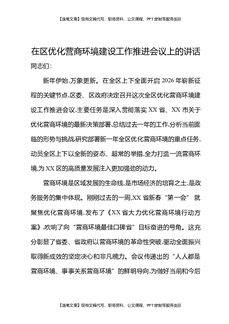 在区优化营商环境建设工作推进会议上的讲话.docx