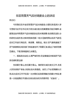 在区雨雪天气应对调度会上的讲话.docx