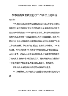 在市全面推进依法行政工作会议上的讲话.docx