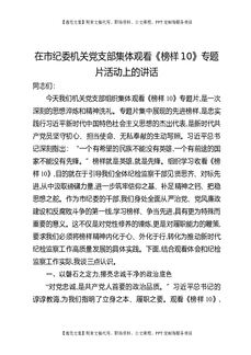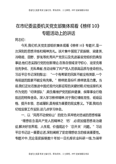 在市纪委机关党支部集体观看《榜样10》专题片活动上的讲话.docx