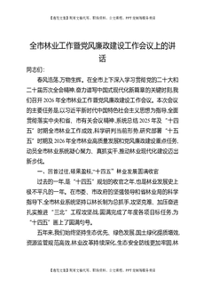 全市林业工作暨党风廉政建设工作会议上的讲话.docx
