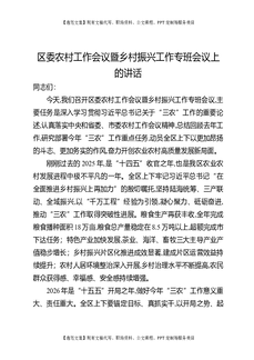 区委农村工作会议暨乡村振兴工作专班会议上的讲话.docx