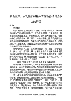 粮食生产、水利暨乡村振兴工作业务培训会议上的讲话.docx