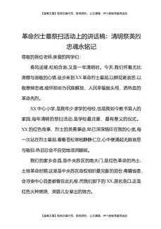 革命烈士墓祭扫活动上的讲话稿:清明祭英烈忠魂永铭记.docx