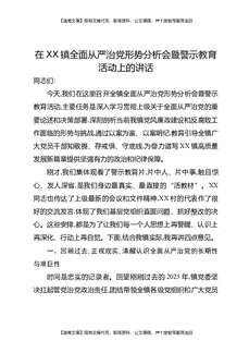 在XX镇全面从严治党形势分析会暨警示教育活动上的讲话.docx