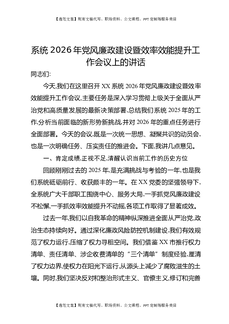 系统2026年党风廉政建设暨效率效能提升工作会议上的讲话.docx