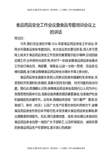 食品药品安全工作会议暨食品专题培训会议上的讲话.docx