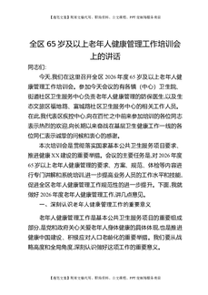 全区65岁及以上老年人健康管理工作培训会上的讲话.docx