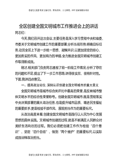 全区创建全国文明城市工作推进会上的讲话.docx