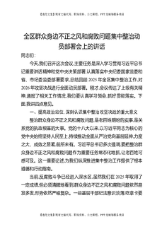 全区群众身边不正之风和腐败问题集中整治动员部署会上的讲话.docx