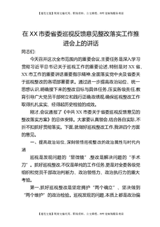在XX市委省委巡视反馈意见整改落实工作推进会上的讲话.docx