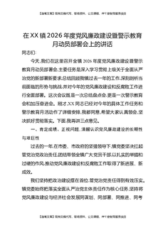 在XX镇2026年度党风廉政建设暨警示教育月动员部署会上的讲话.docx